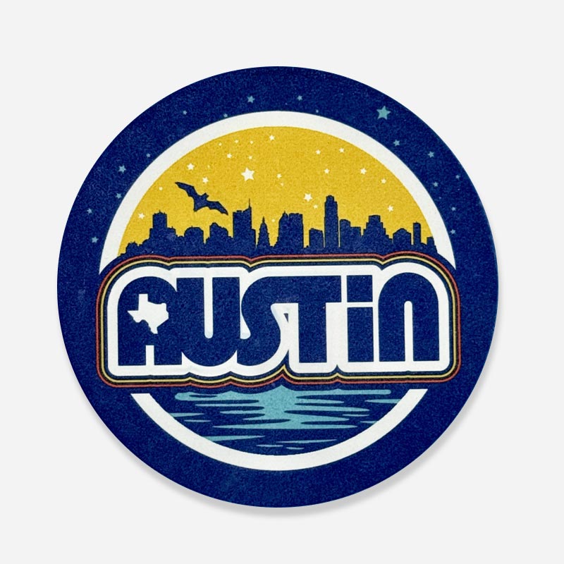 Bring on the nostalgia with our Retro Austin Sandstone Coaster, featuring our classic retro Austin logo layered over a subtle silhouette of the city skyline. Crafted from natural sandstone, this coaster keeps your surfaces safe while adding a vintage-inspired pop of local charm. Perfect for Austin fans, retro design lovers, or anyone looking to add a little ATX flair to their space.
