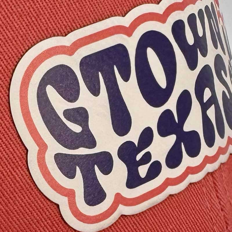 Get groovy in Georgetown, Texas with our Gtown Groove Trucker Hat! Emblazoned with a UV printed peace sign patch, this hat is the perfect accessory for a casual day out. With its quirky and playful design, you'll be the coolest cat in town. Peace out.